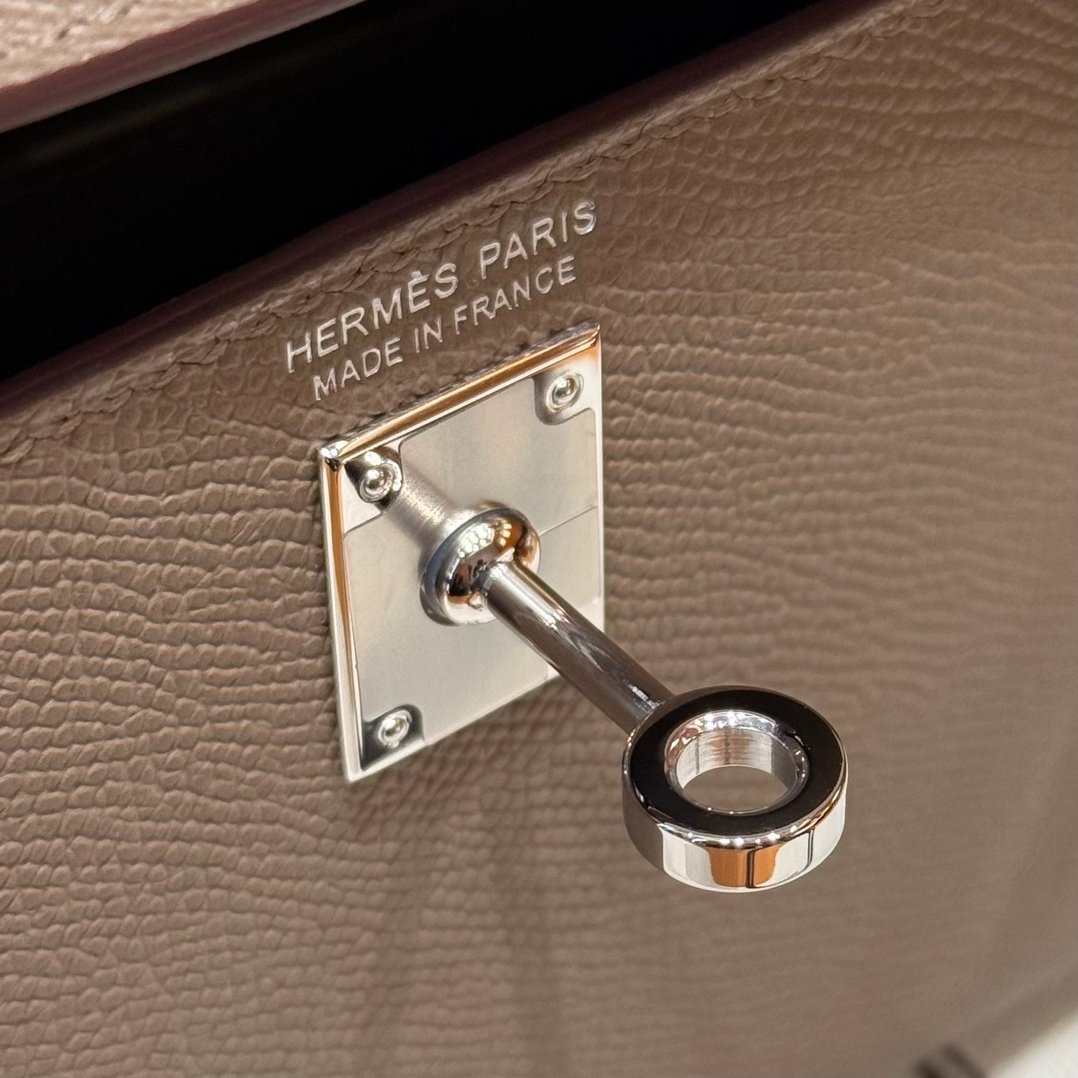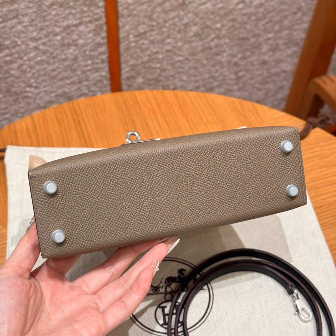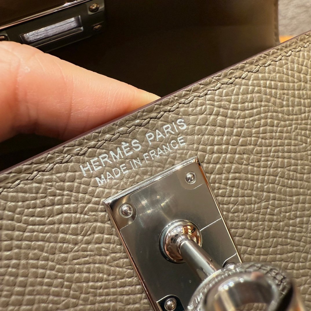 Mini Kelly II, elephant grey with bark color and black wrist strap, silver buckle, French imported palm-grain cowhide, high-end fully handmade exclusive customization‼ ️ Purely hand-nailed, hand-engraved hardware, stainless steel electroplated 18k hardware