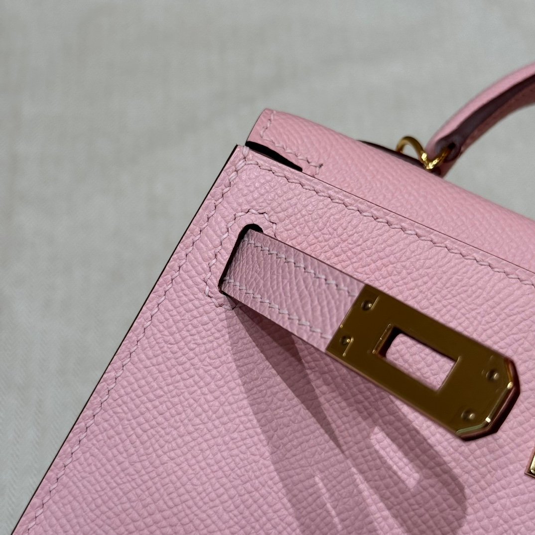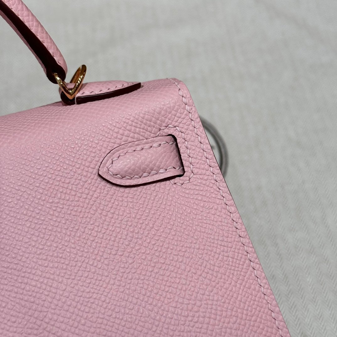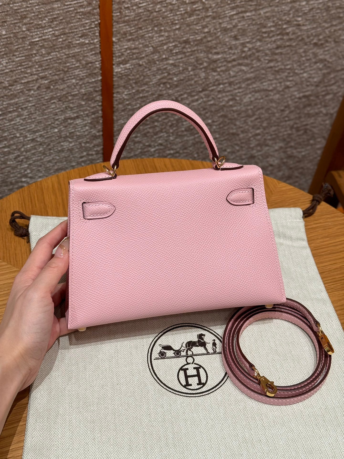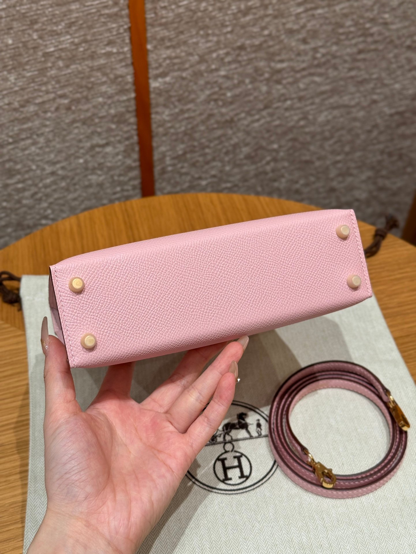Mini Kelly II, 3Q pink, French imported palm-print cowhide, gold buckle, high-end fully handmade exclusive customization‼ ️ Purely hand-made nails, hand-engraved hardware, stainless steel electroplating 18k hardware