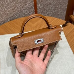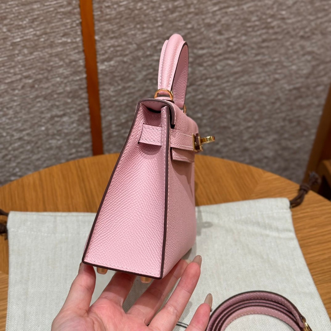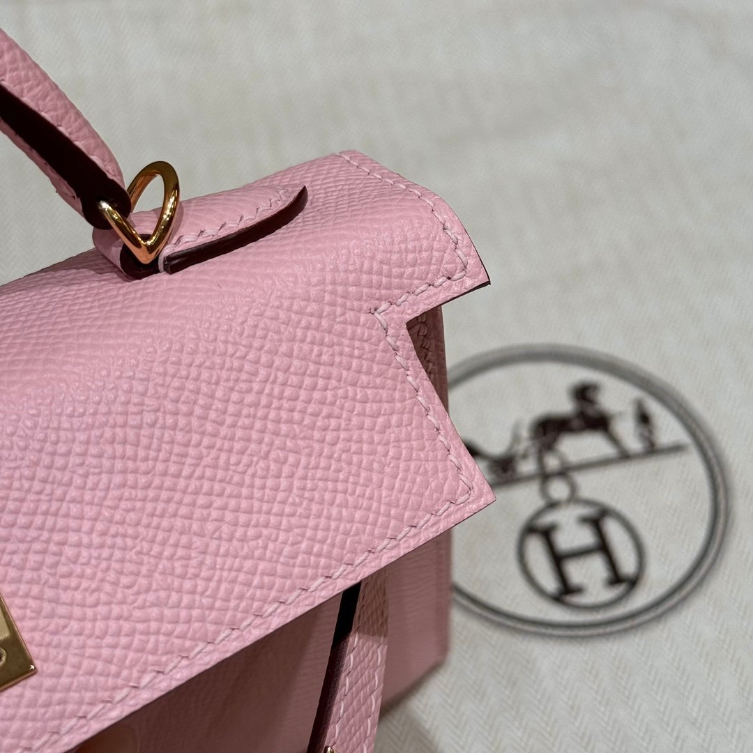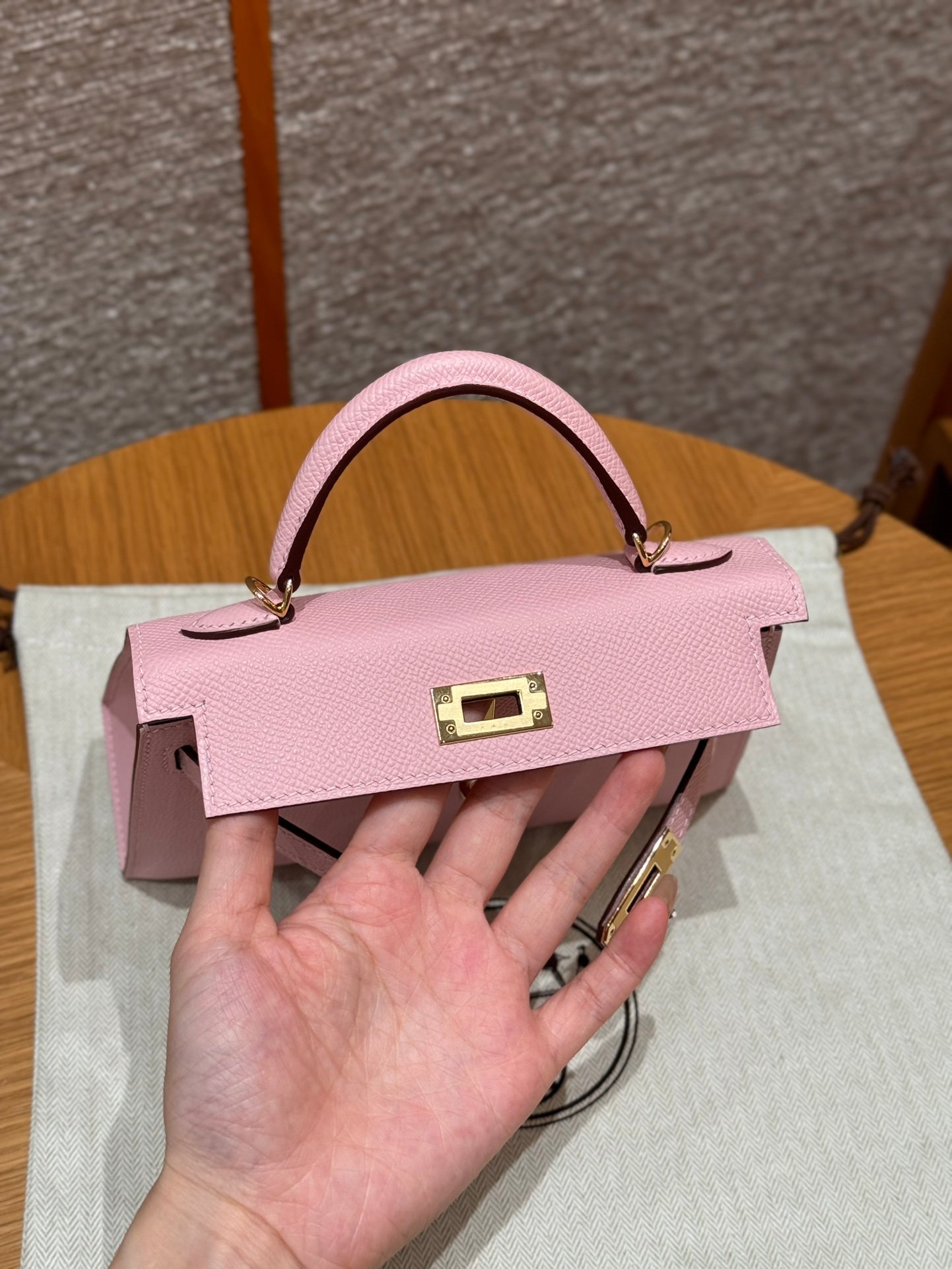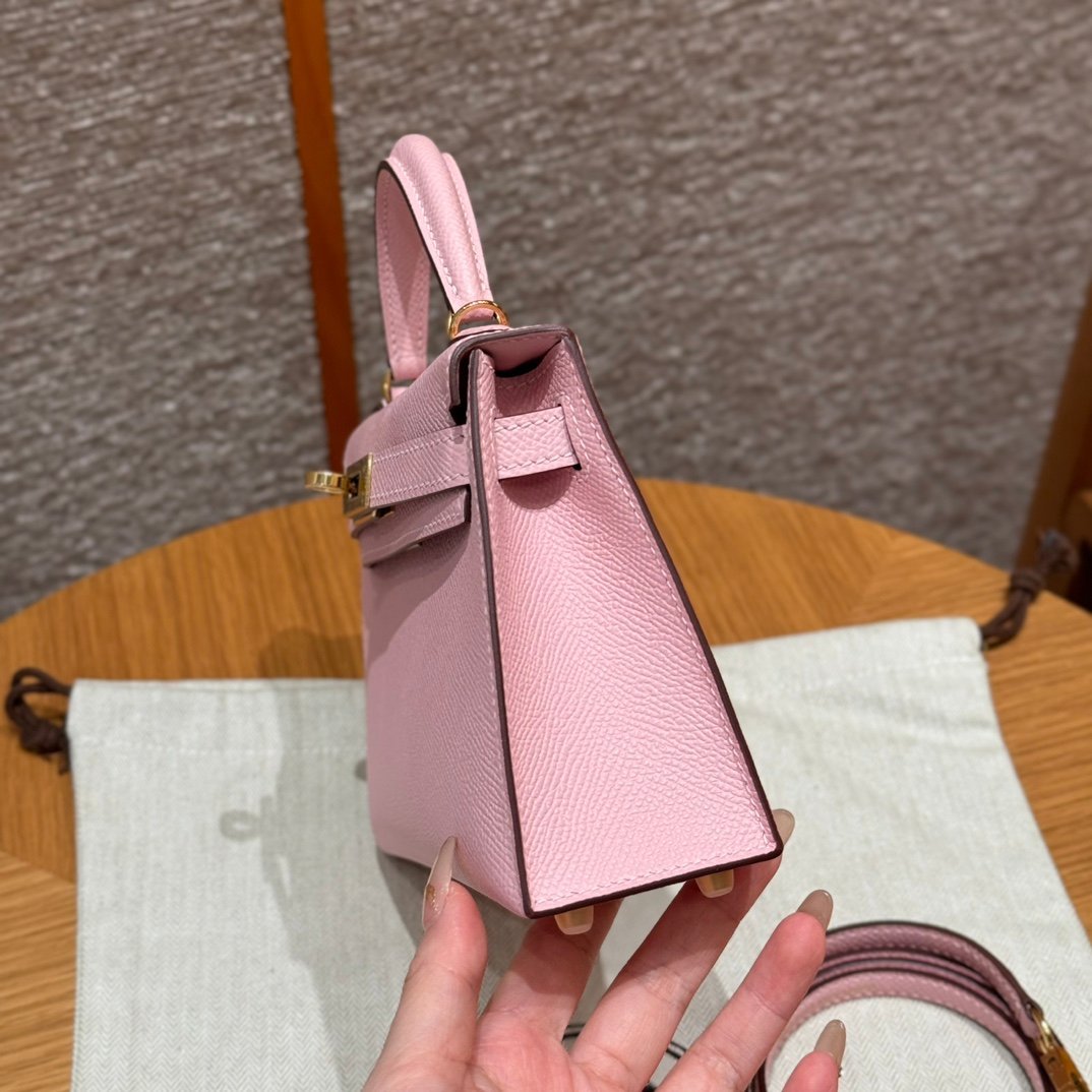 Mini Kelly II, 3Q pink, French imported palm-print cowhide, gold buckle, high-end fully handmade exclusive customization‼ ️ Purely hand-made nails, hand-engraved hardware, stainless steel electroplating 18k hardware