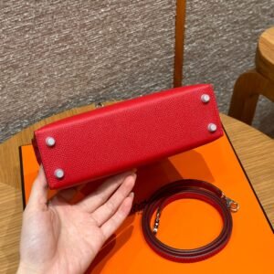 Mini Kelly II, Hermès red, French imported cowhide, gold buckle, high-end fully handmade exclusive customization‼ ️ Purely hand-made nails, hand-carved hardware, stainless steel electroplating 18k hardware