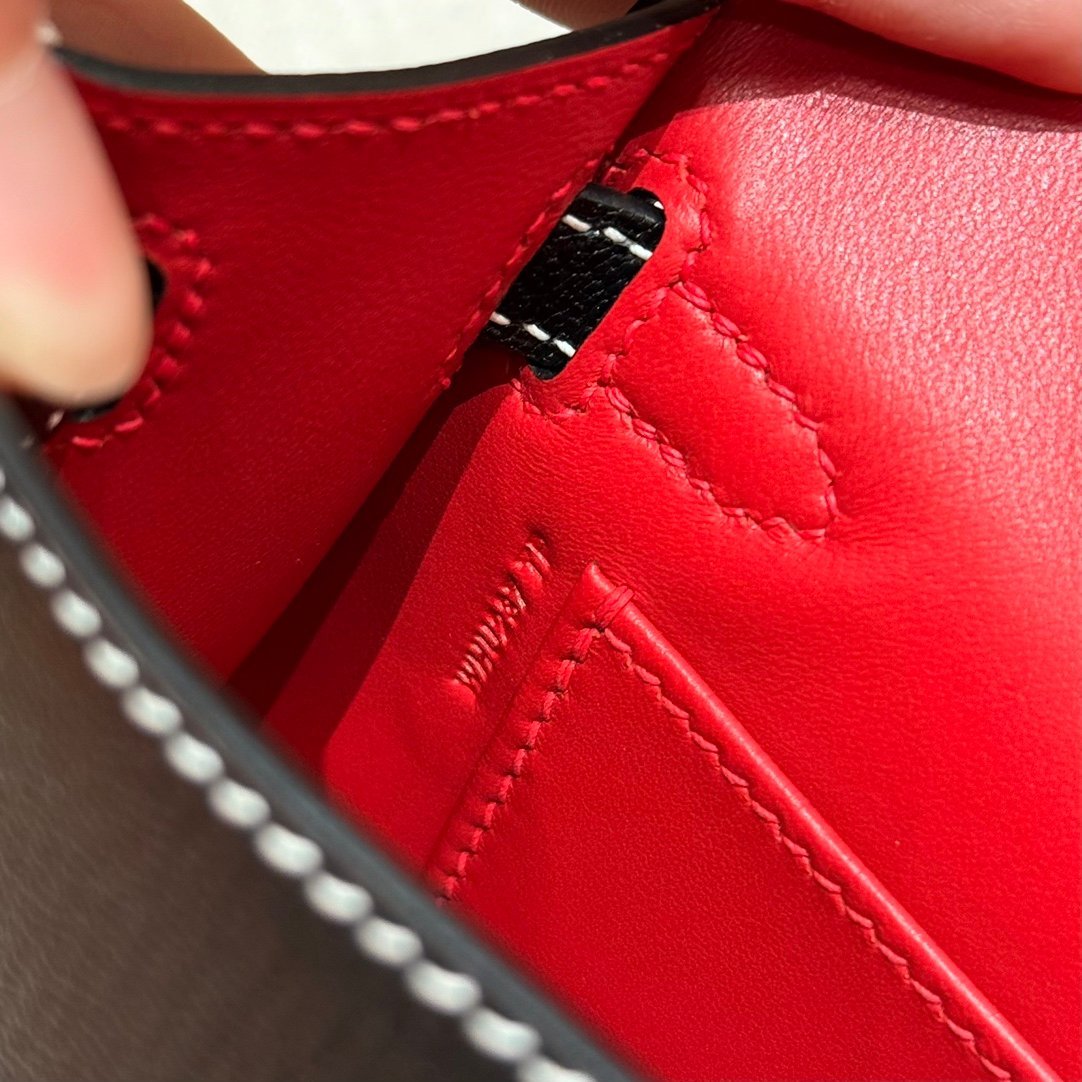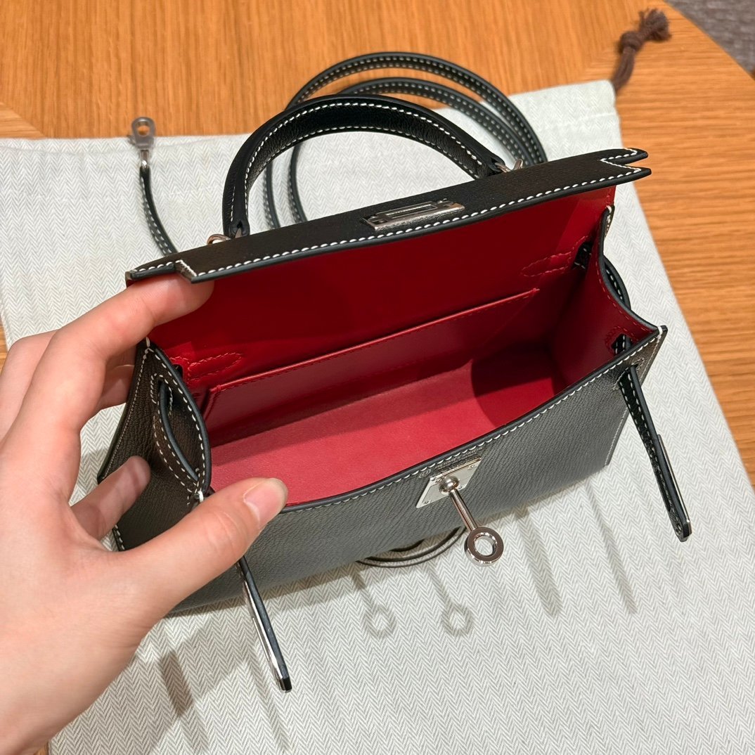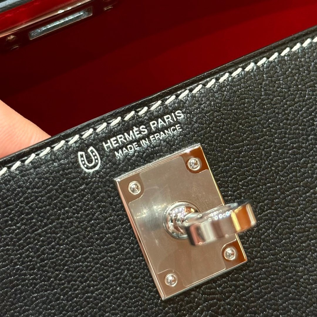 Mini Kelly II, black and red, French imported goatskin, silver buckle, high-end fully handmade exclusive customization‼ ️ Purely hand-made nails, hand-carved hardware, stainless steel electroplating 18k hardware