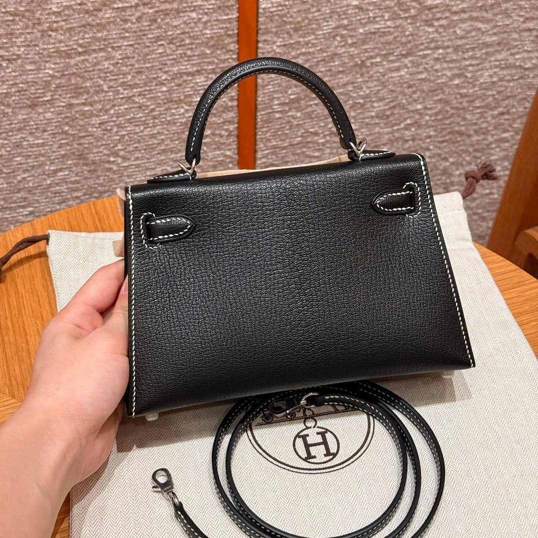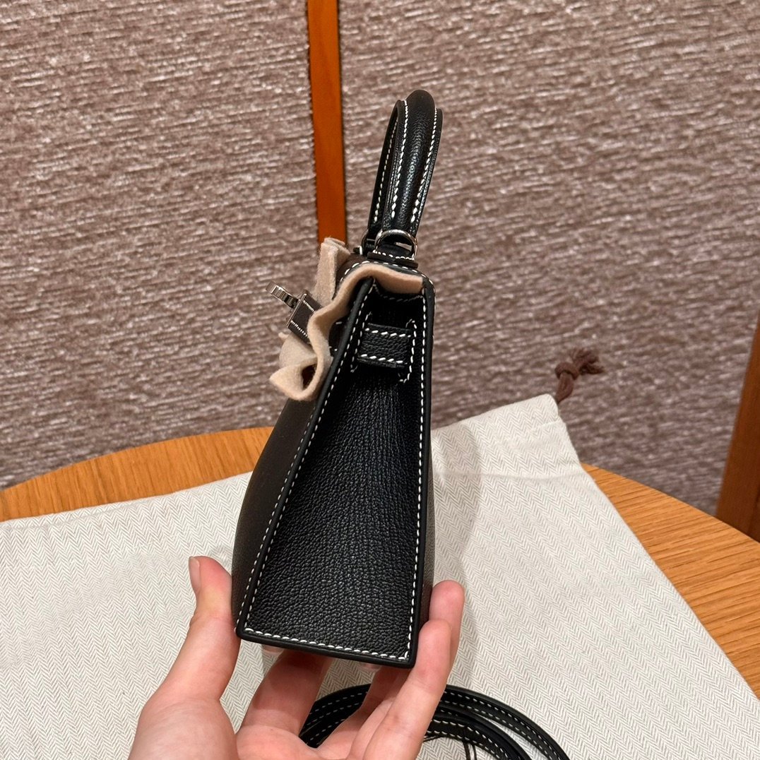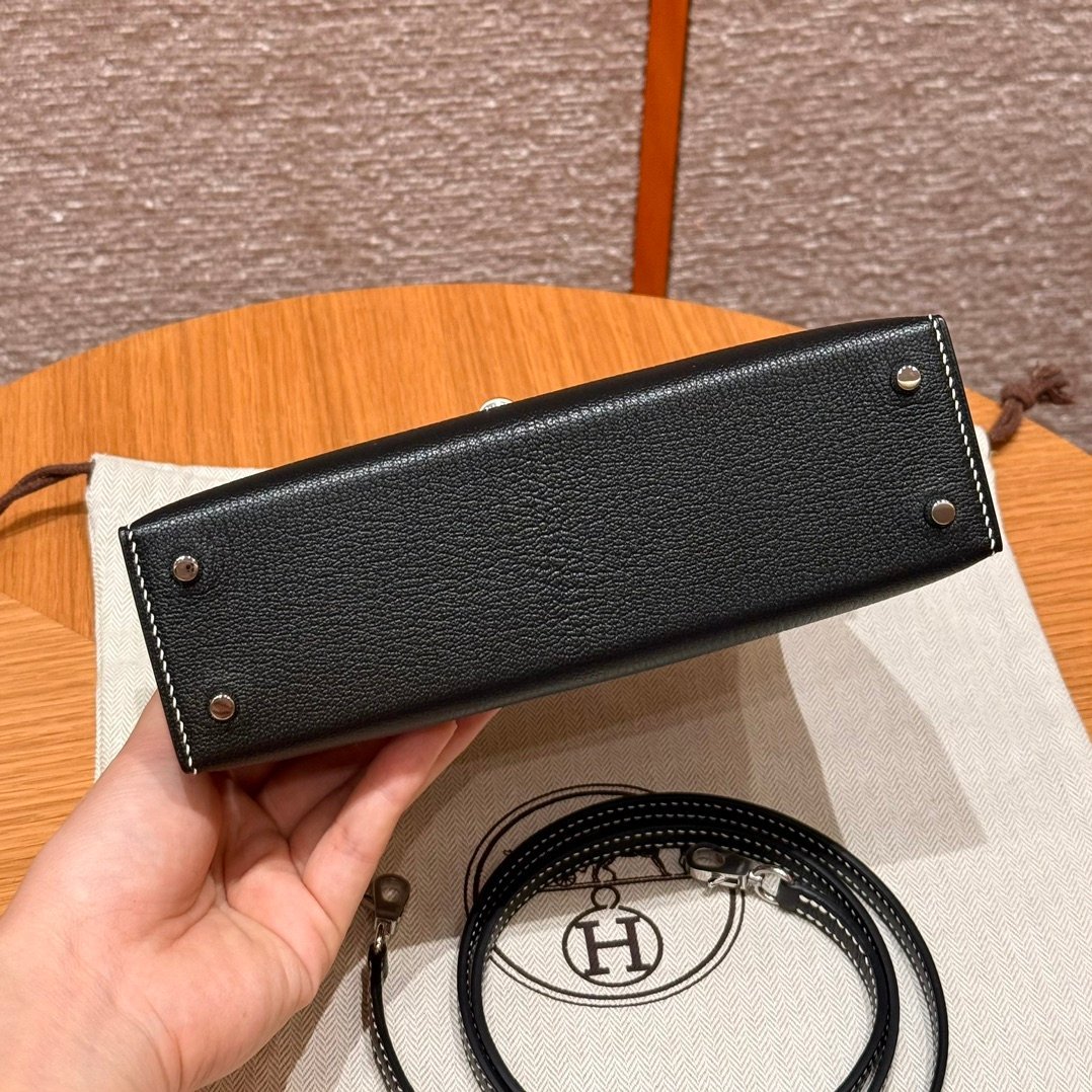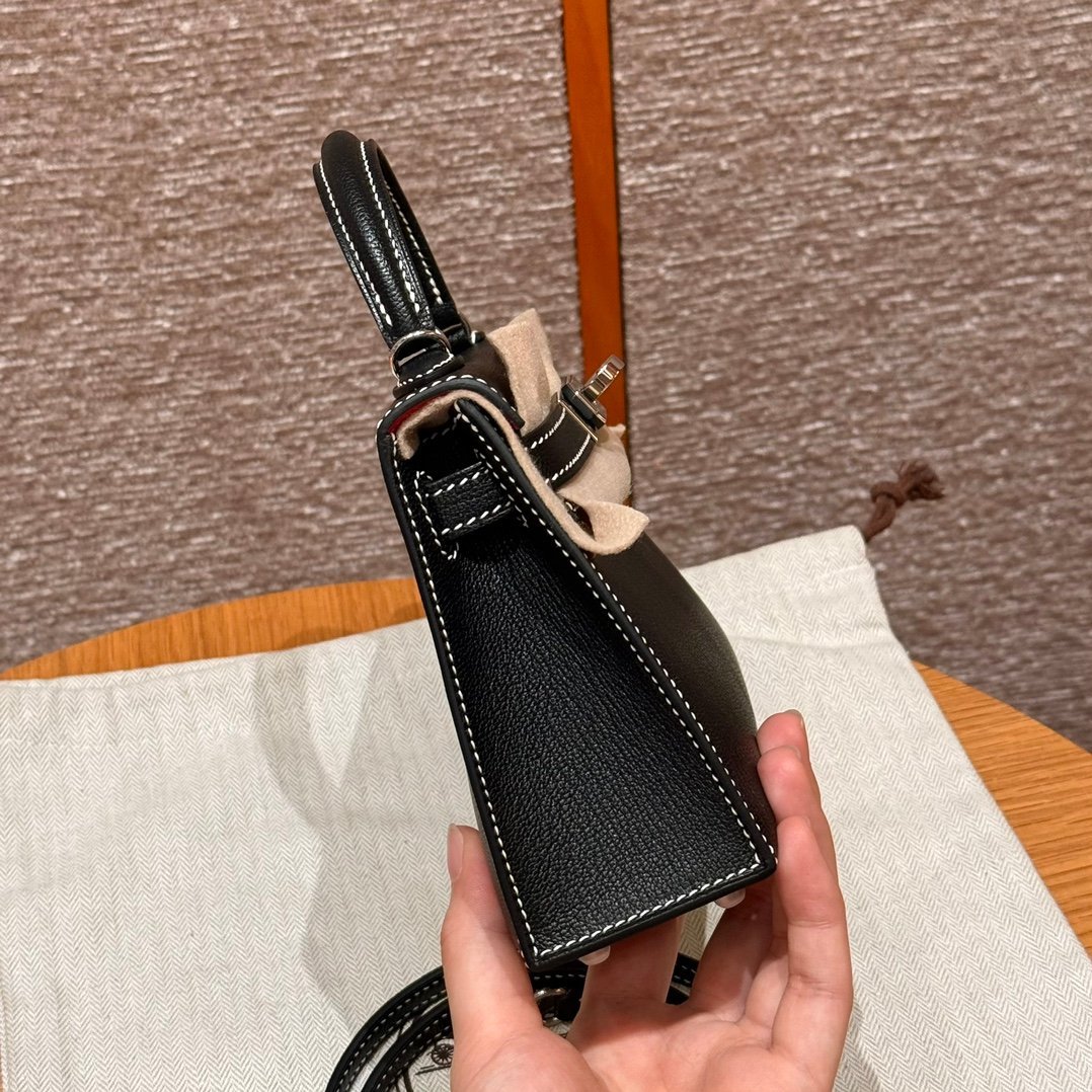 Mini Kelly II, black and red, French imported goatskin, silver buckle, high-end fully handmade exclusive customization‼ ️ Purely hand-made nails, hand-carved hardware, stainless steel electroplating 18k hardware
