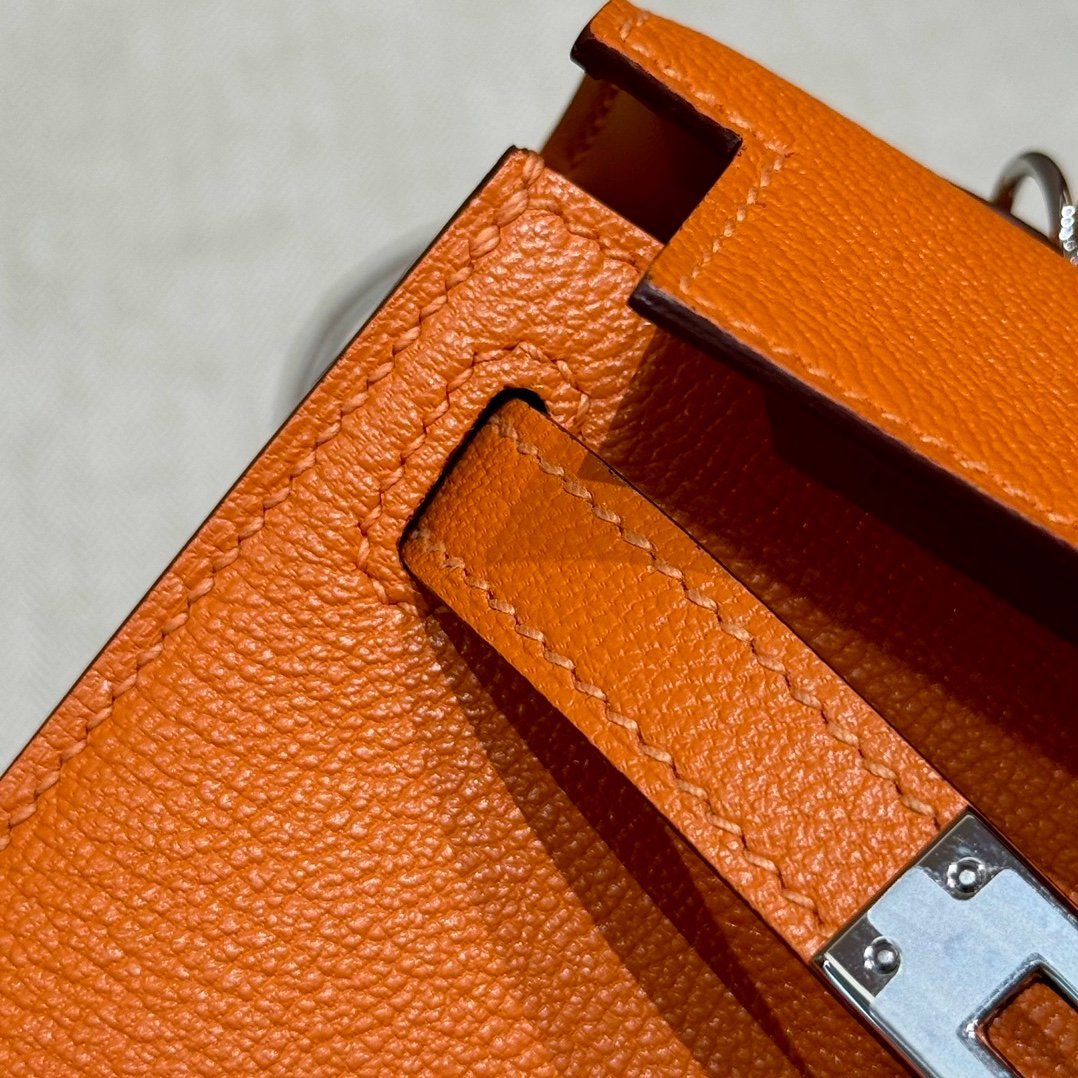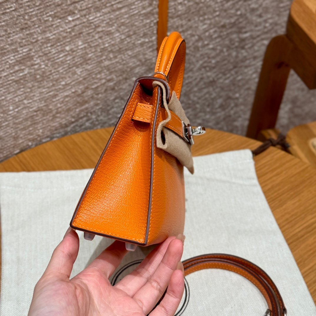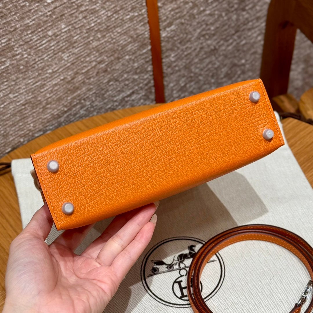 Mini Kelly II, classic orange 🍊 French imported goatskin, silver buckle, high-end fully handmade exclusive customization‼ ️ Purely hand-made nails, hand-carved hardware, stainless steel electroplating 18k hardware