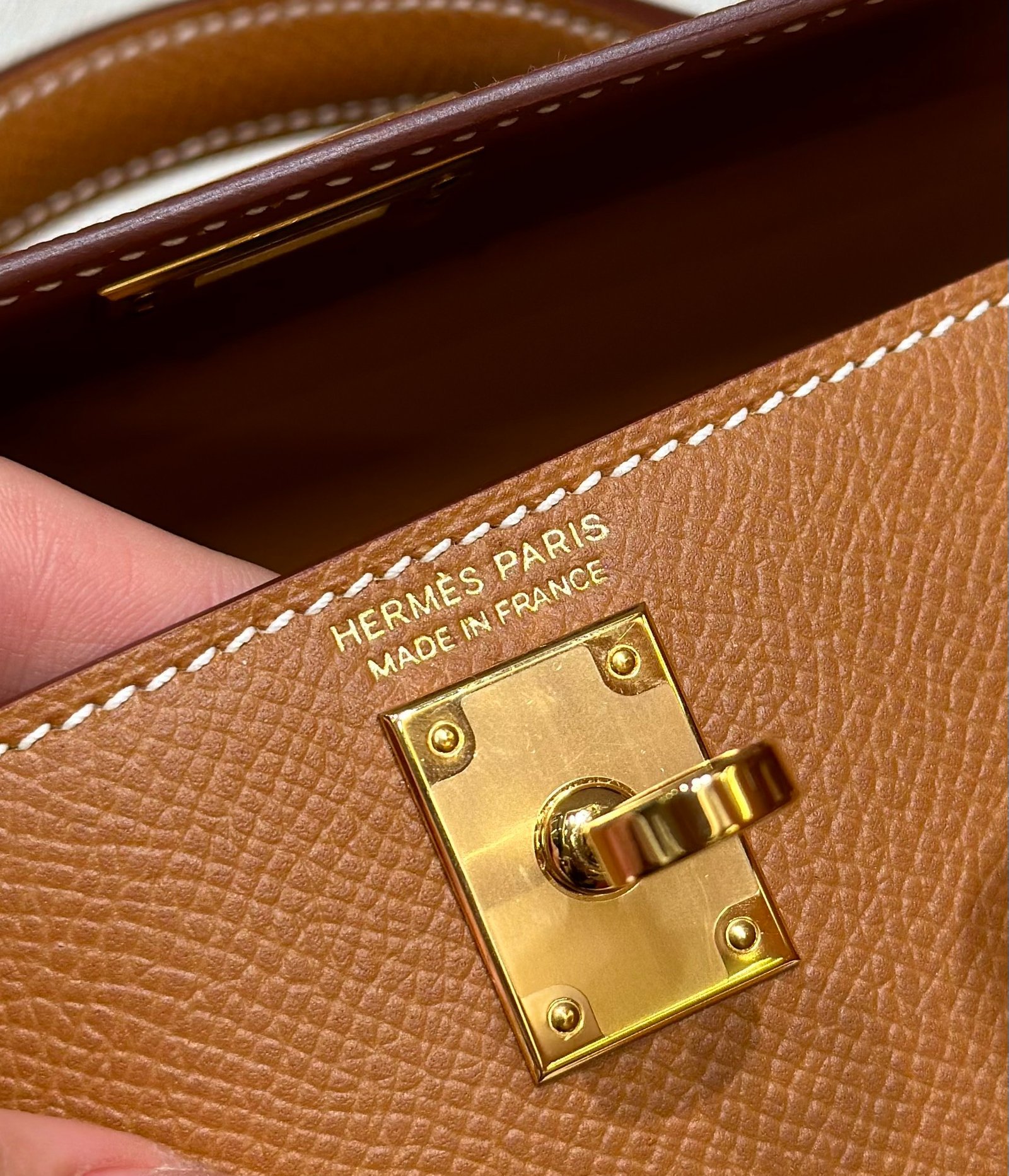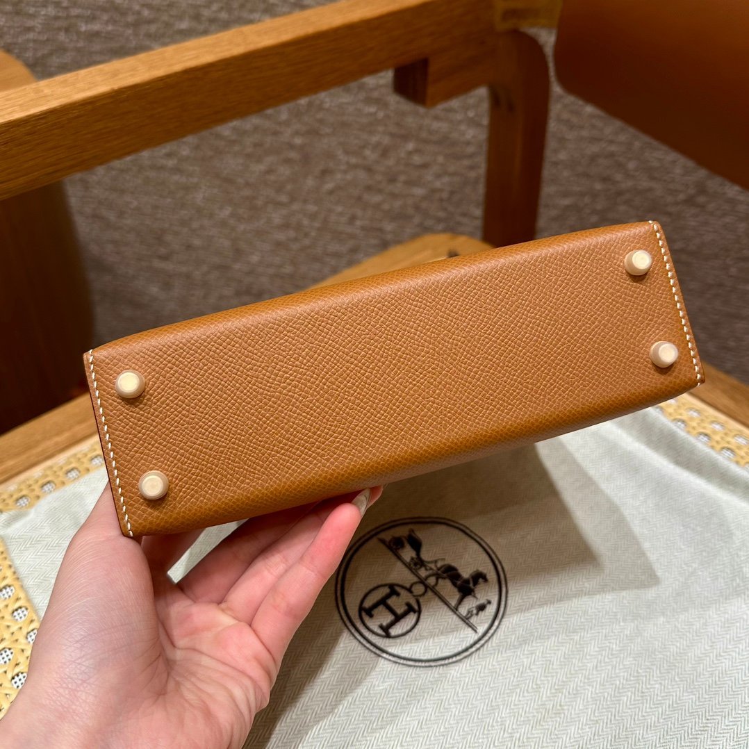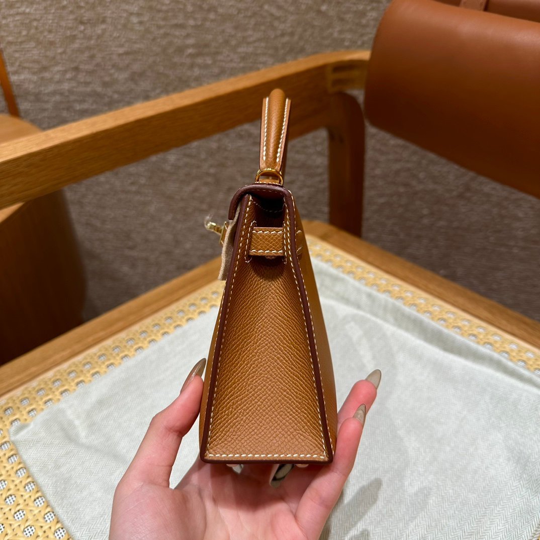 Mini Kelly II, golden brown, French imported cowhide, gold buckle, high-end fully handmade exclusive customization‼ ️ Purely hand-made nails, hand-carved hardware, fine steel electroplating 18k hardware