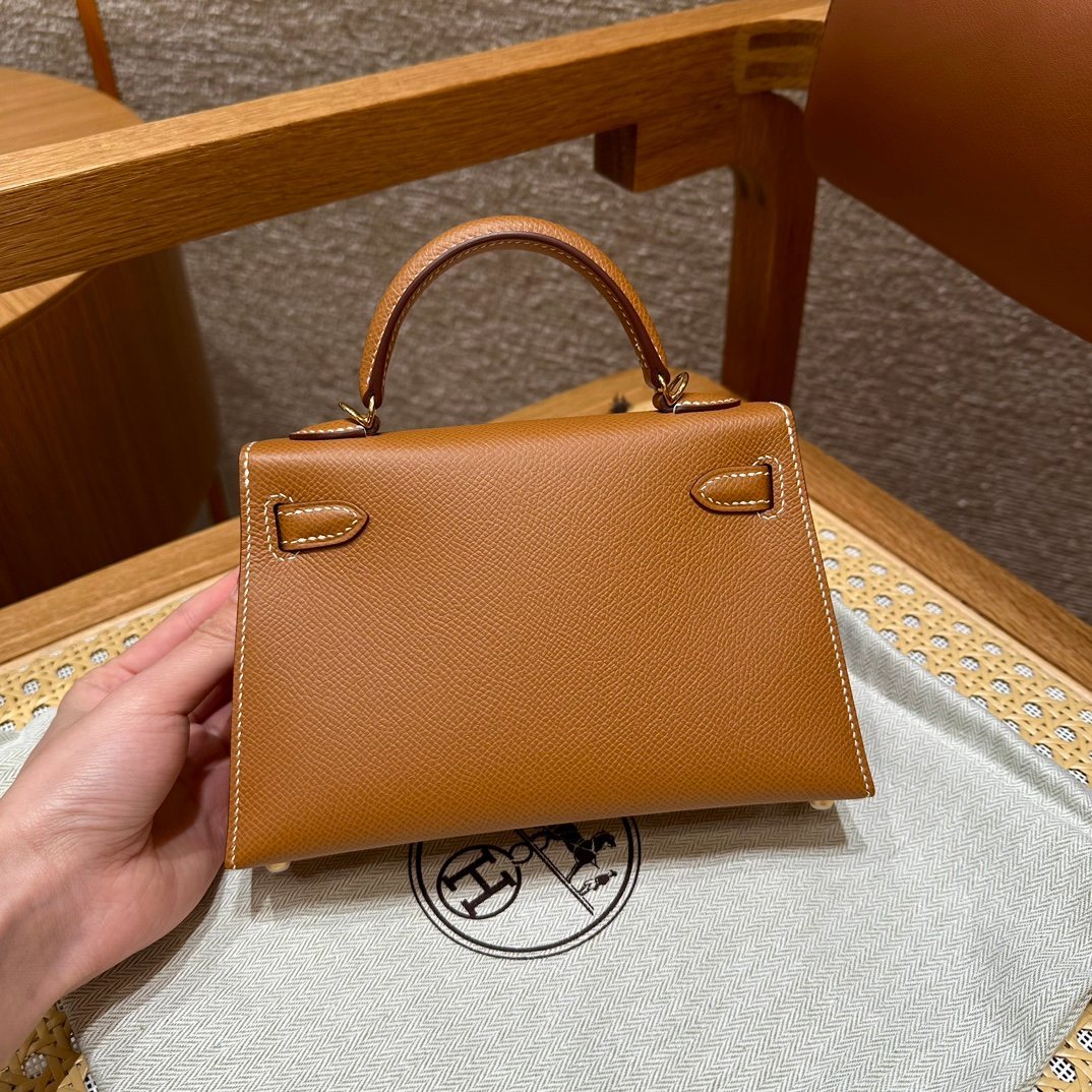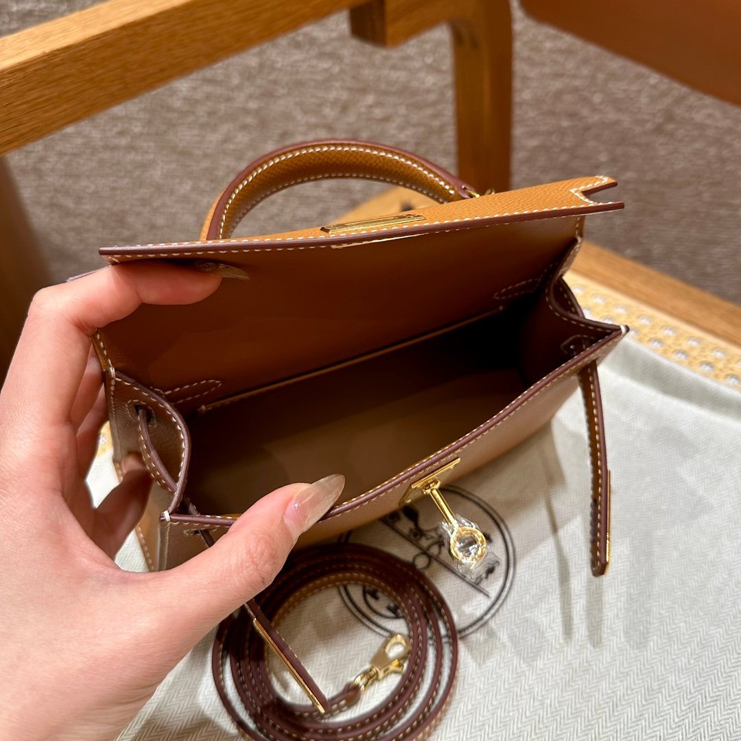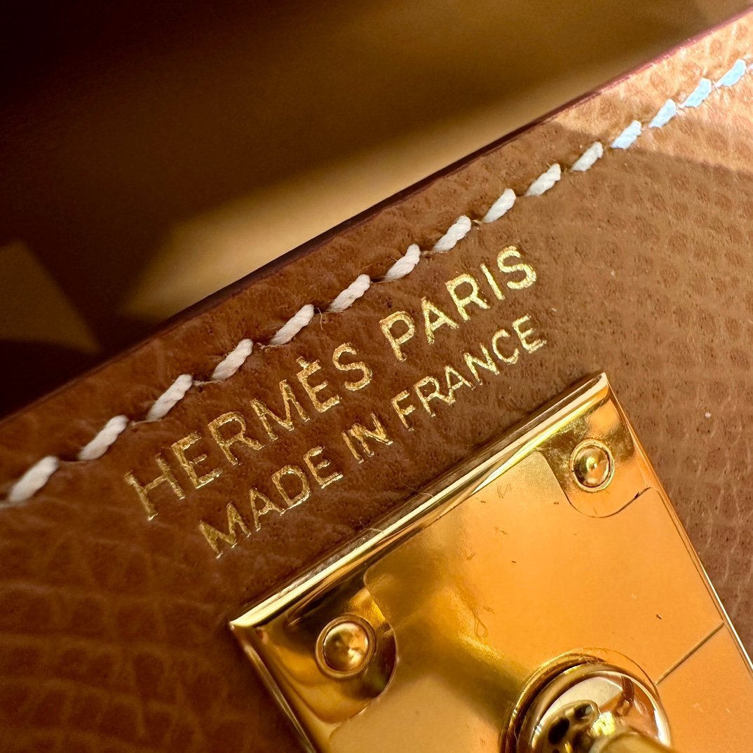 Mini Kelly II, golden brown, French imported cowhide, gold buckle, high-end fully handmade exclusive customization‼ ️ Purely hand-made nails, hand-carved hardware, fine steel electroplating 18k hardware