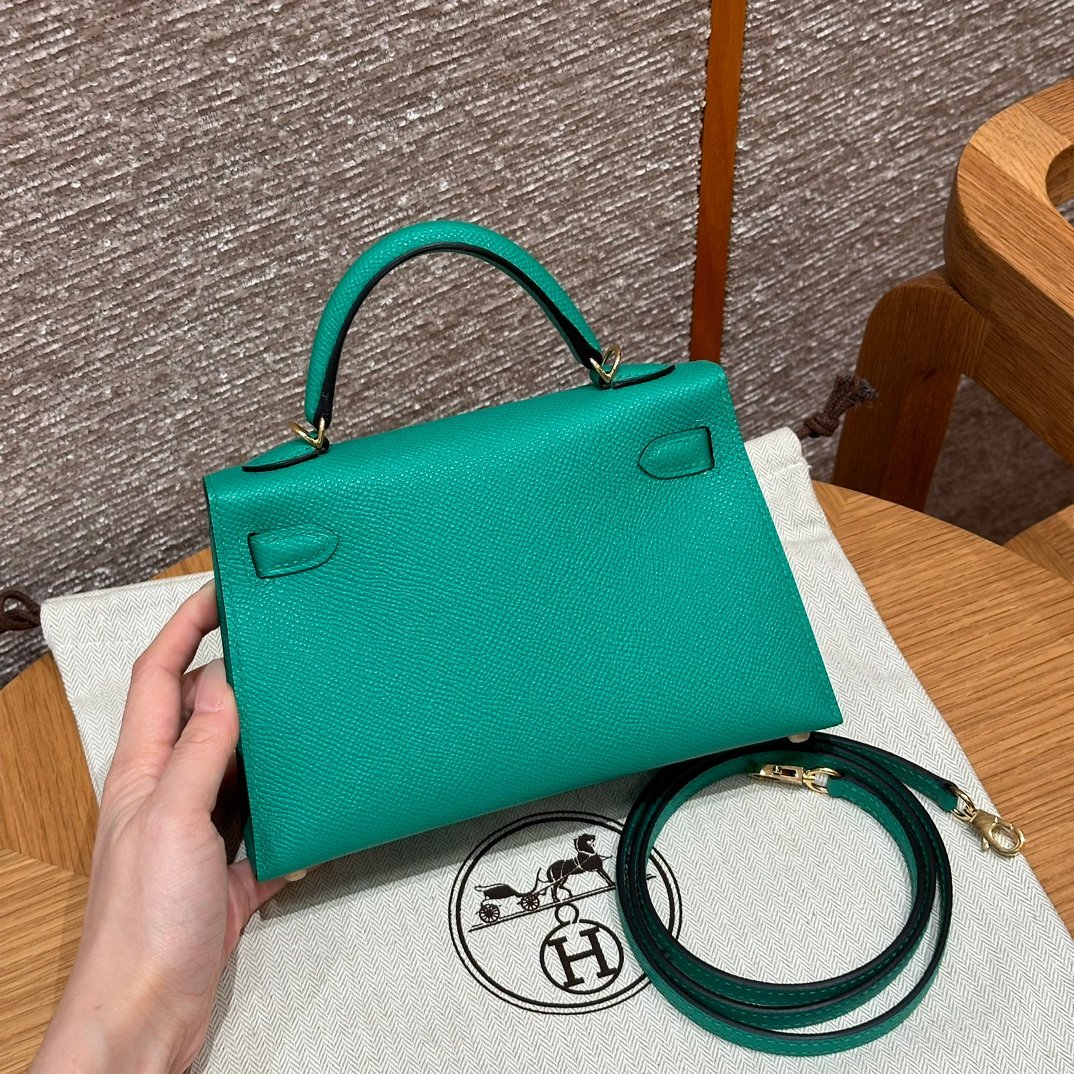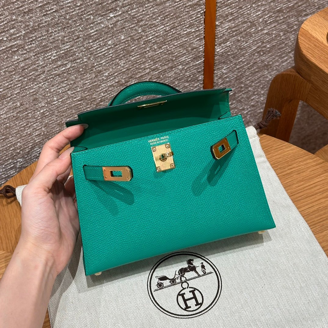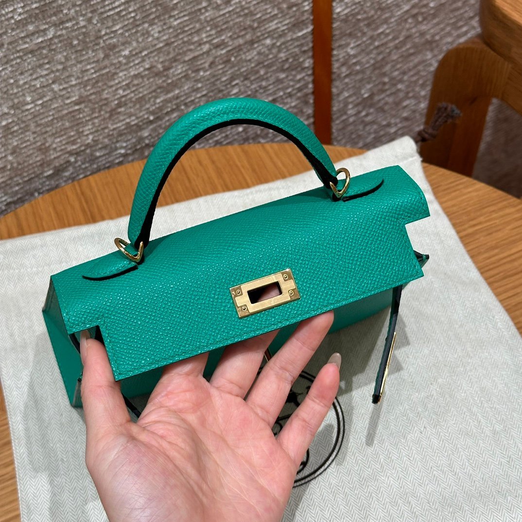 Mini Kelly II, Imperial Green French imported palm-grain cowhide, gold buckle, high-end fully handmade exclusive customization‼ ️ Purely hand-made nails, hand-carved hardware, stainless steel electroplating 18k hardware