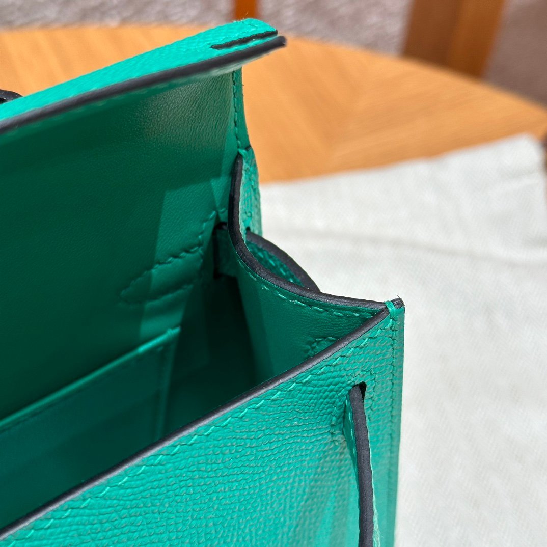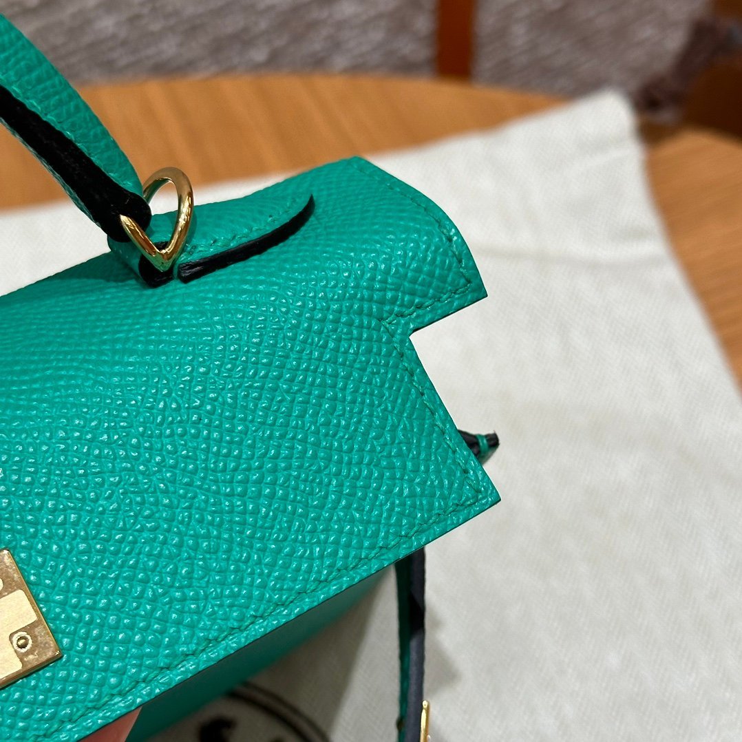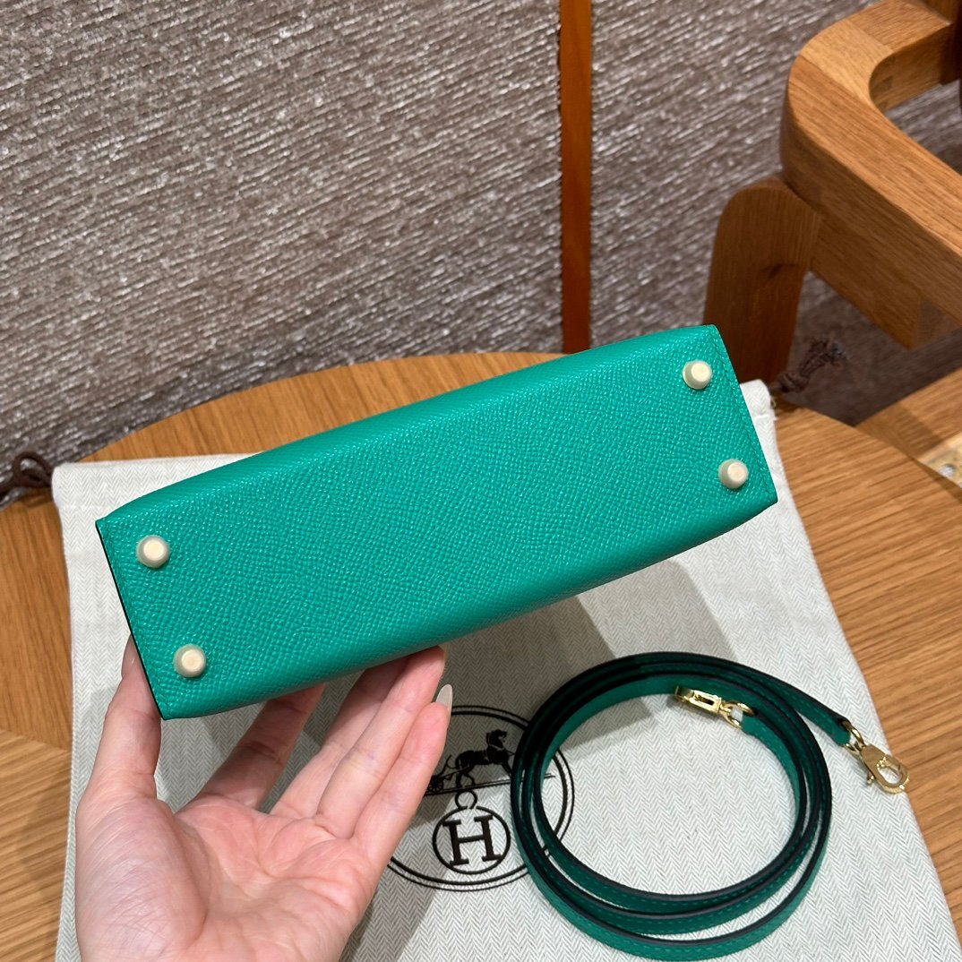 Mini Kelly II, Imperial Green French imported palm-grain cowhide, gold buckle, high-end fully handmade exclusive customization‼ ️ Purely hand-made nails, hand-carved hardware, stainless steel electroplating 18k hardware